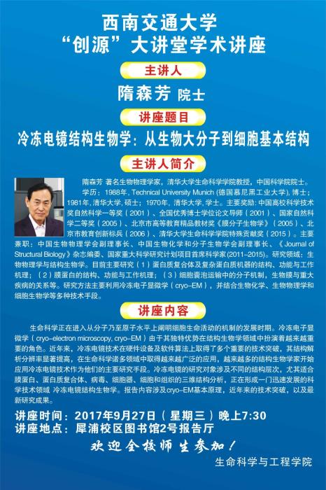 【创源大讲堂】冷冻电镜结构生物学:从生物大分子到细胞基本结构