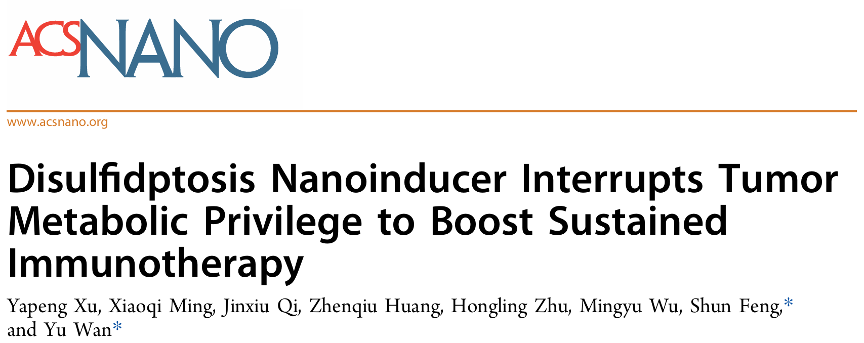 2. 在ACS NANO发表研究论文:新型双硫死亡纳米诱导剂阻断肿瘤代谢优势,助力免疫疗法长效抗癌