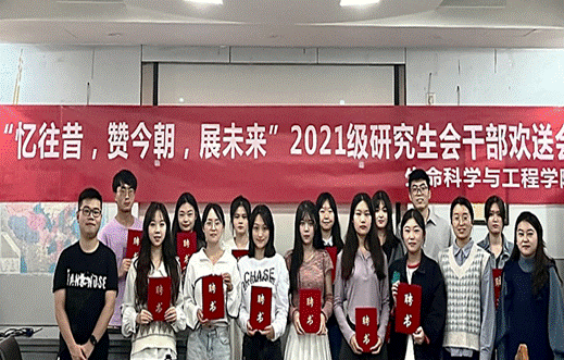 第八届研究生会骨干欢送会于9月24日在九里校区3609顺利举行。学院学生工作组副组长、团委书记高鹏老师,辅导员杨颖增、兰卓和饶欢以及第八届研究生会全体成员出席本次欢送会。