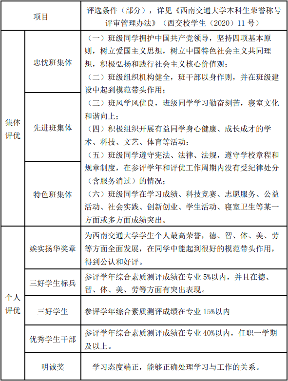 本科生荣誉称号评审管理办法》相关规定,为了树立典型,表彰先进,培育优良班风学风,促进学生德智体美劳全面发展,学校决定在2022年9月-11月期间组织开展2021-2022学年本科生荣誉称号评选工作。
