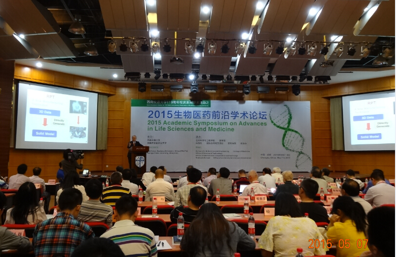、医学院、科技处、国际合作与交流处、研究生院、校庆办共同承办的2015生物医药前沿学术论坛开幕式结束后,中国工程院院士、上海交通大学教授戴尅戎以“3D打印——一种给个性化骨科移植带来深刻影响的技术”(3D Printing----AProfoundTechnology for Personalized Orthopaedic Implant)为题做了精彩报告。他回顾3D打印发展历程,表明该技术已被运用于医疗领域的设计及制造并取得良好成效。此外,他还强调CAD在3D打印中的重要作用,并以具体实例生动地向大家展示了将3D打印技术应用于骨科移植的全过程。